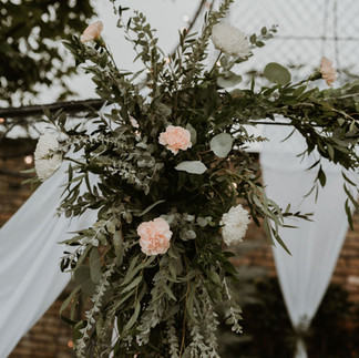 For example, we often work with the Terrain in Devon, Pennsylvania, where the venue itself becomes part of your floral story. Terrain’s courtyard and greenhouse are already layered with potted herbs, trailing vines, silvery eucalyptus, flowering shrubs, and seasonal nursery blooms. The ceremony pergola is framed by mature trees and textural greens; café lights and hanging ferns add a soft, garden-party glow. Because so much natural beauty is built in, you don’t need to cover every surface - your floral budget can work smarter, not bigger. Here's a few photos featuring that venue: